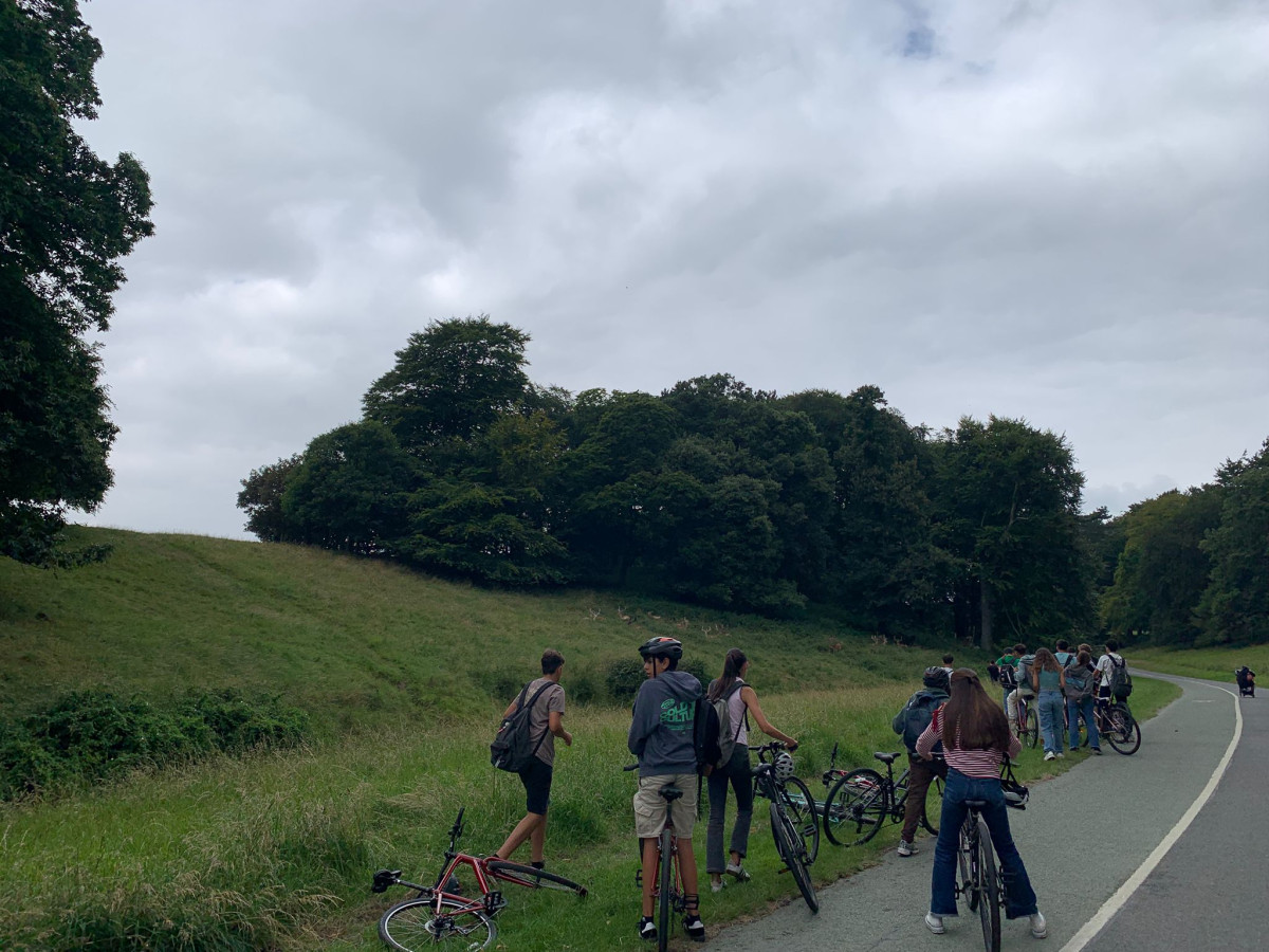 Hola familias, hoy los alumnos has ido a Dublín y a POENIX PARK, un parque precioso donde esta la embajada americana y la gran cruz que fue puesta con la visita de Juan Pablo II. También es muy famoso por sus ciervos, los cuales van a sus anchas, mientras nuestro alumnos van en bici por el parque.